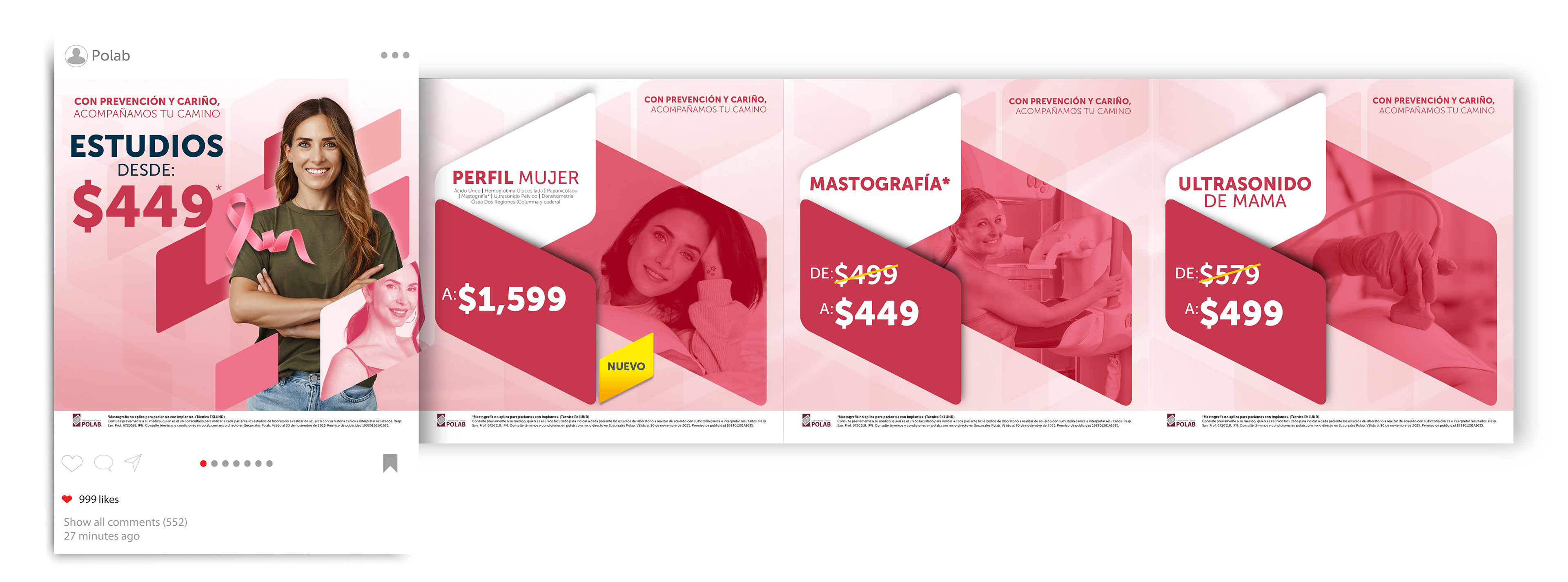 · Se diseñaron campañas digitales e impresas, alineadas con los valores de la marca y enfocada en transmitir un mensaje preventivo, confiable y profesional. La estrategia creativa incluyó el desarrollo de piezas visuales para redes sociales, carteles, folletos y anuncios de punto de venta, buscando impactar en el público objetivo con un lenguaje visual claro, empático y segmentado por género.