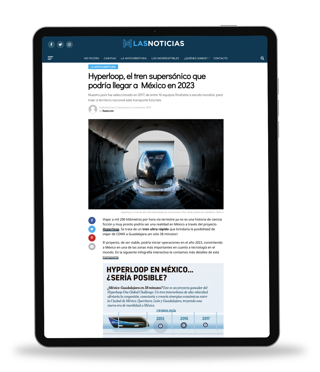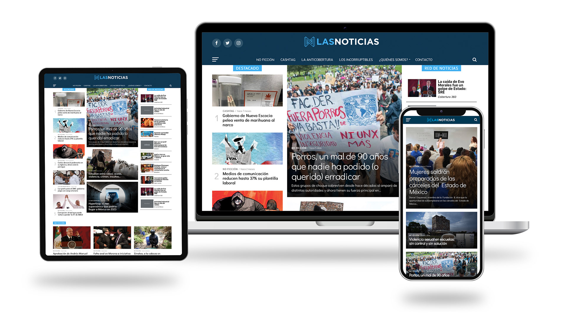 • "Las Noticias" es un portal dedicado a la investigación, análisis, negocios y entretenimiento, diseñado para ofrecer información veraz y profunda. A través de diversas narrativas digitales y un enfoque gráfico innovador, "Las Noticias" se esfuerza por transmitir contenido de manera efectiva a distintas audiencias. Su principal objetivo es generar investigaciones sólidas que proporcionen a su público los argumentos necesarios para formar un criterio propio sobre los temas más relevantes