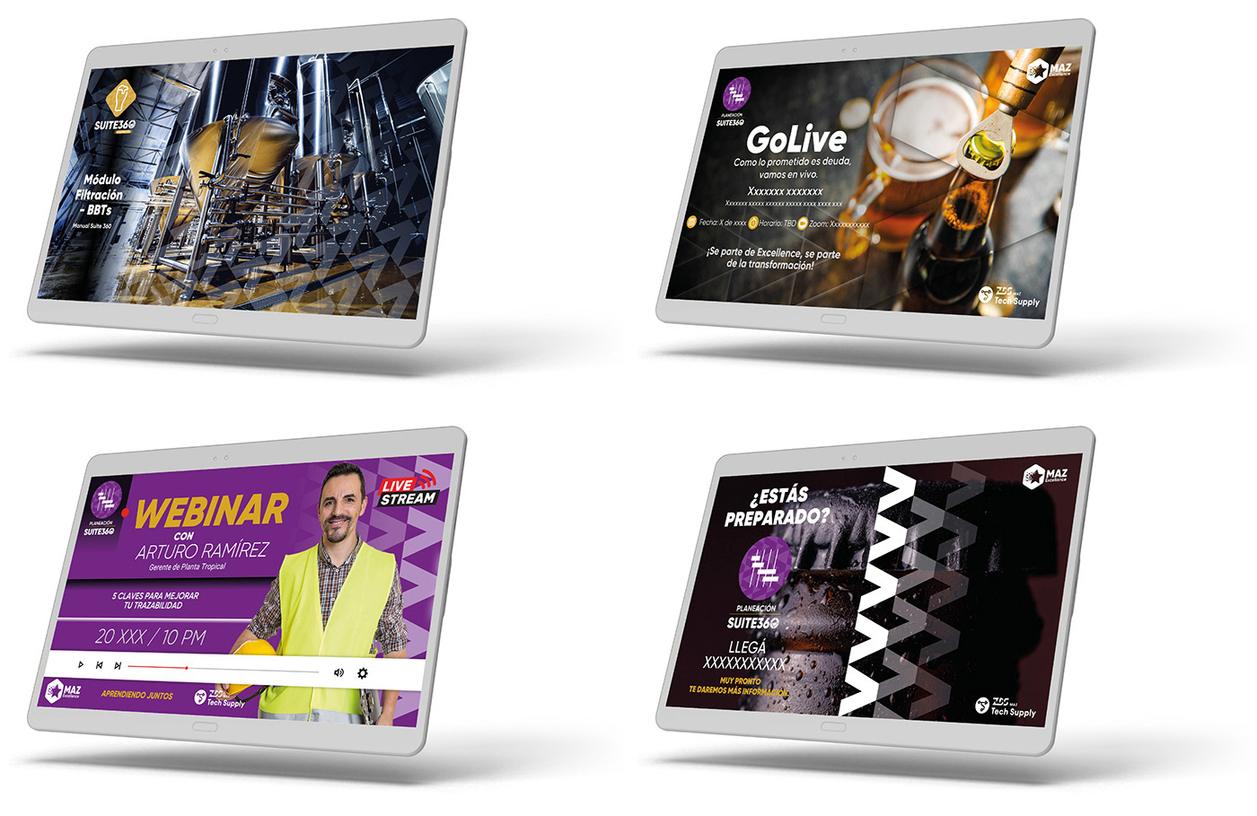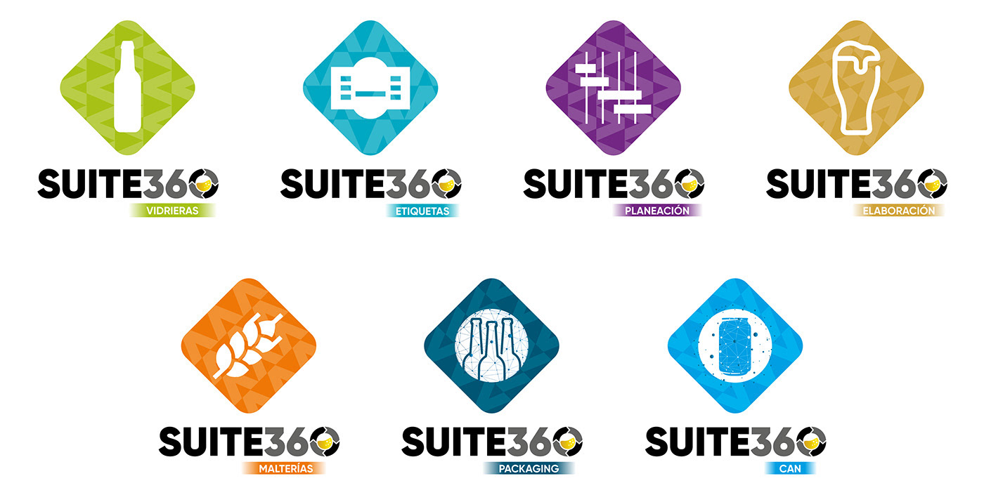 Se desarrolló la identidad de la herramienta SUITE 360 y el sistema gráfico que funcionará para diferenciar cada una de las áreas de producción de cerveza que utilizarán este desarrollo tecnológico.
